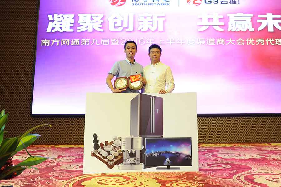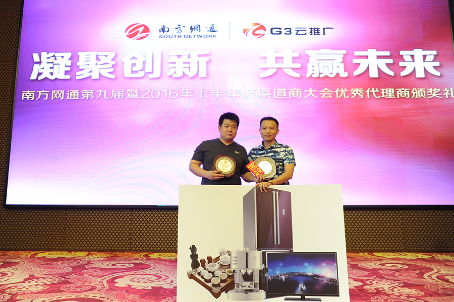 南方網(wǎng)通運營總監(jiān)——蘭總為滄州優(yōu)秀代理商孫總頒獎