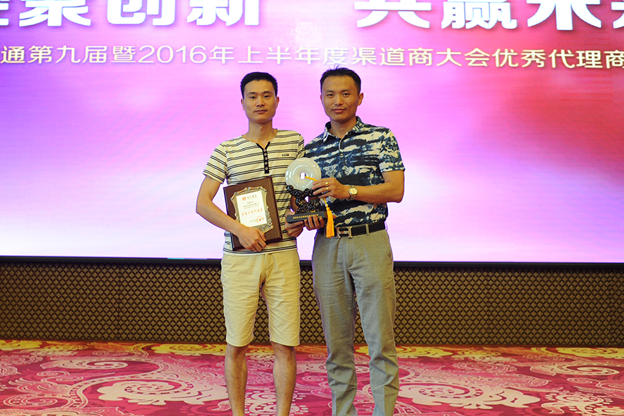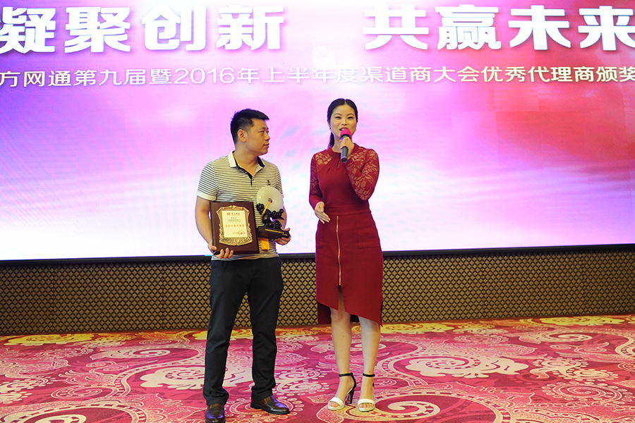 南方網(wǎng)通渠道部總監(jiān)-梁總為來自滄州的優(yōu)秀代理商張總頒獎