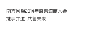 2014年12月12日,南方網通在廣東常平隱賢山莊度假村召開了《攜手并進,共創未來——南方網通2014年度渠道商大會》,會議總結了2014年南方網通及各地代理商全年的發展并對2015年做出了規劃與展望,各代理商都分享了很多自己的經驗,使我們所有參會人員都獲益良多。