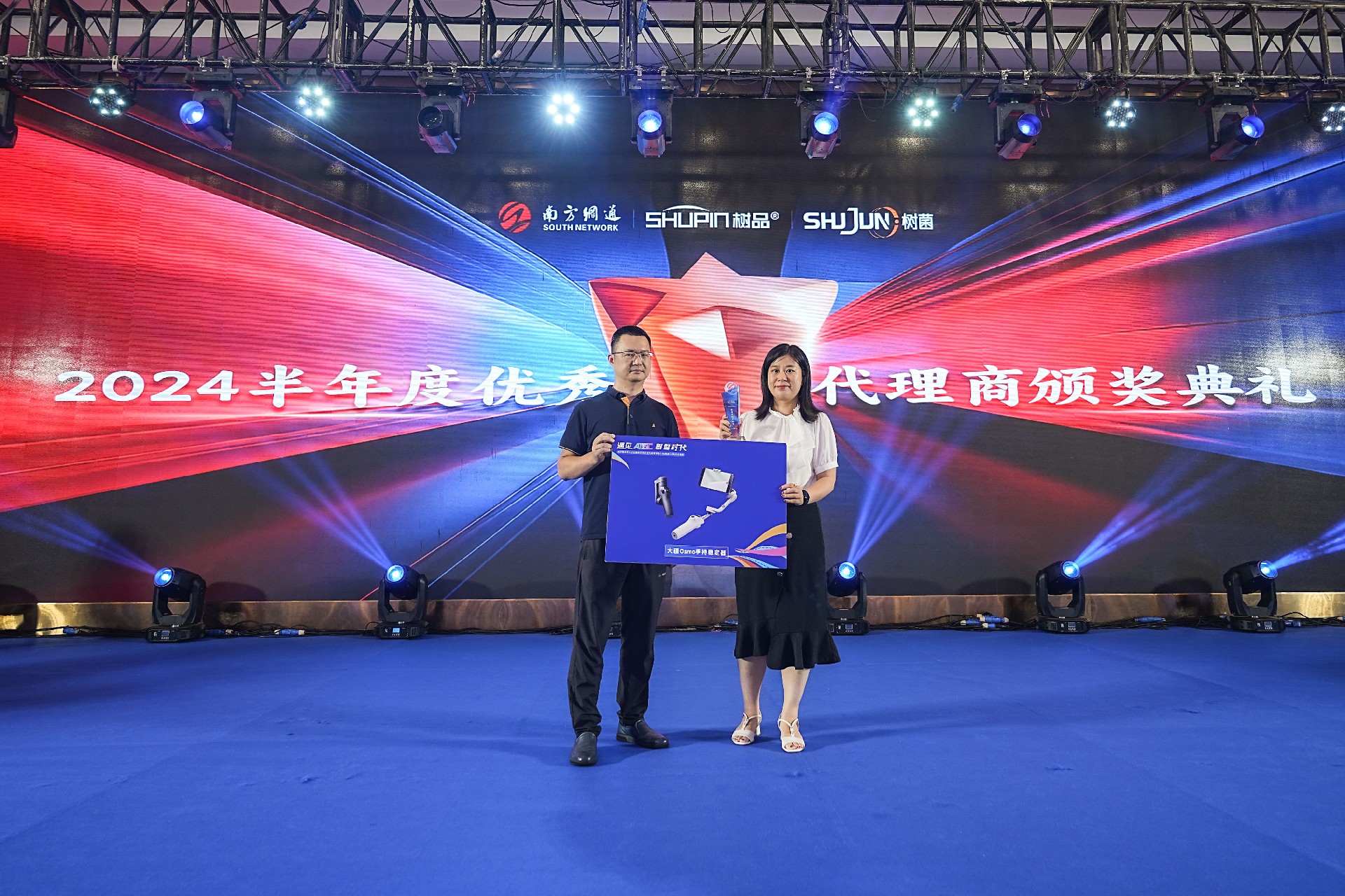 頒獎典禮成為了大會激動人心的時刻,分別有5月團隊PK活動、十佳代理商、樹品首屆企業短視頻大賽、南方網通代理商最具潛力獎頒發。這不僅是對他們付出的認可,更是對所有南方網通合作伙伴的鼓勵和激勵,激發了大家繼續前進的動力。